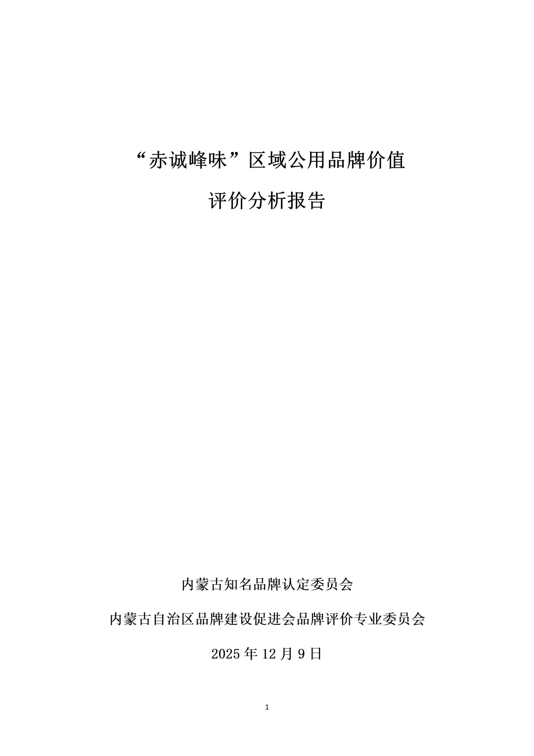 《“赤诚峰味”区域公用品牌价值评价分析报告》
